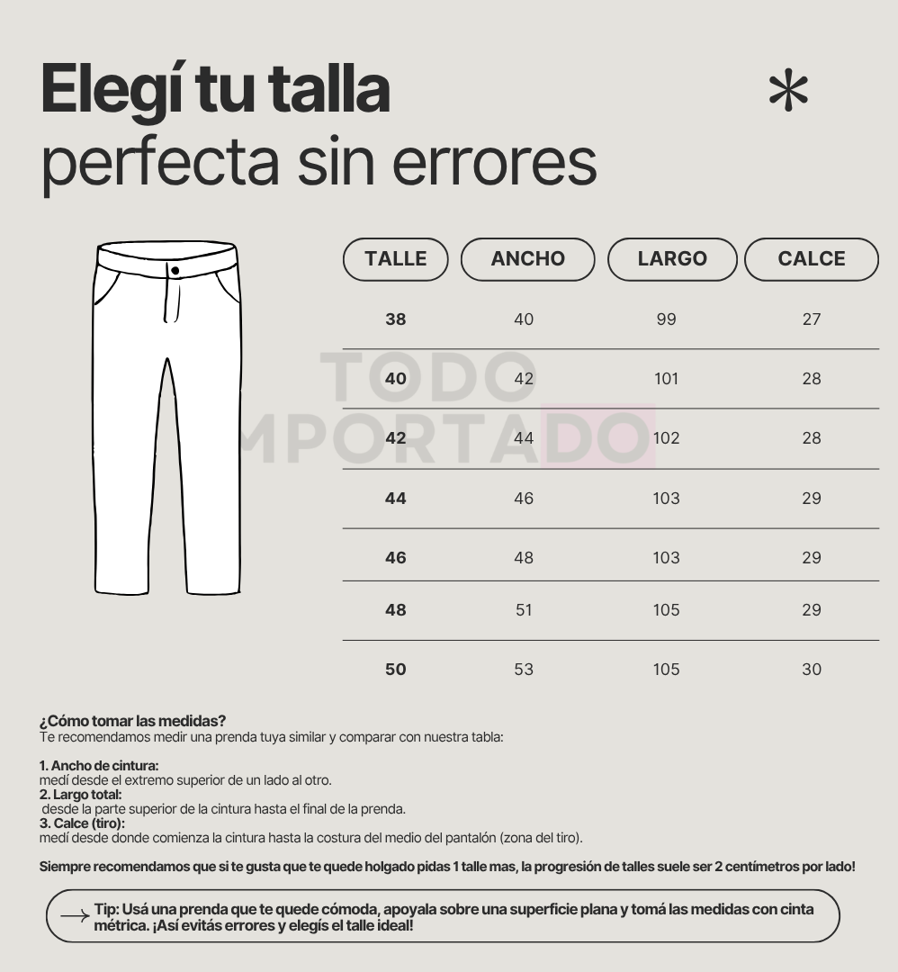 - Talles del 38 al 50 — Diseñado para adaptarse a la mayor diversidad de cuerpos.